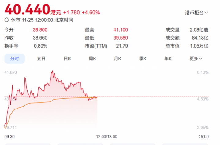 11月25日,截至港股午盘,小米集团股价上涨超4%配资炒股网官网,升至40.440港元。消息面上,11月24日,小米集团于港交所发布公告表示,小米集团创始人、董事长兼CEO雷军斥资超1亿港元增持小米集团260万股,按当天平均价为每股约38.58港元。此次增持后,雷军持股比例增加至23.26%。