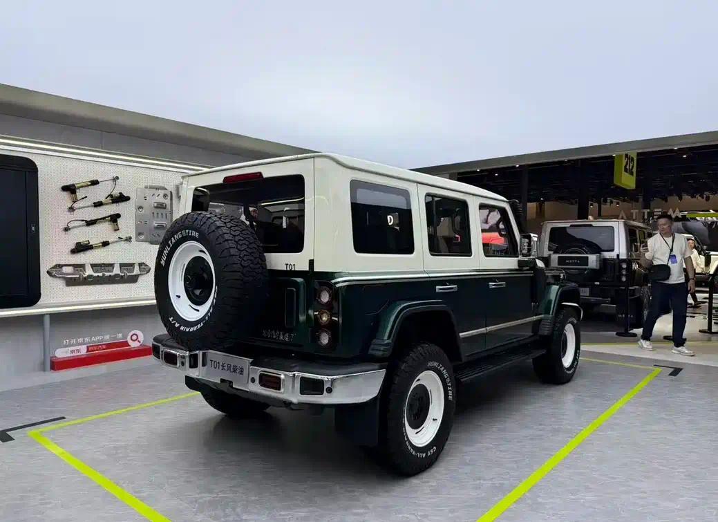 本次车展首发的T10主打双门四座、可拆卸车顶设计,瞄准户外越野与个性玩乐市场。车身尺寸4416/1955/1925mm,轴距2570mm,短轴布局带来更强灵活性与通过性;外观延续复古硬朗风格,圆形大灯、粗壮格栅、防刮轮眉,还原经典越野韵味。