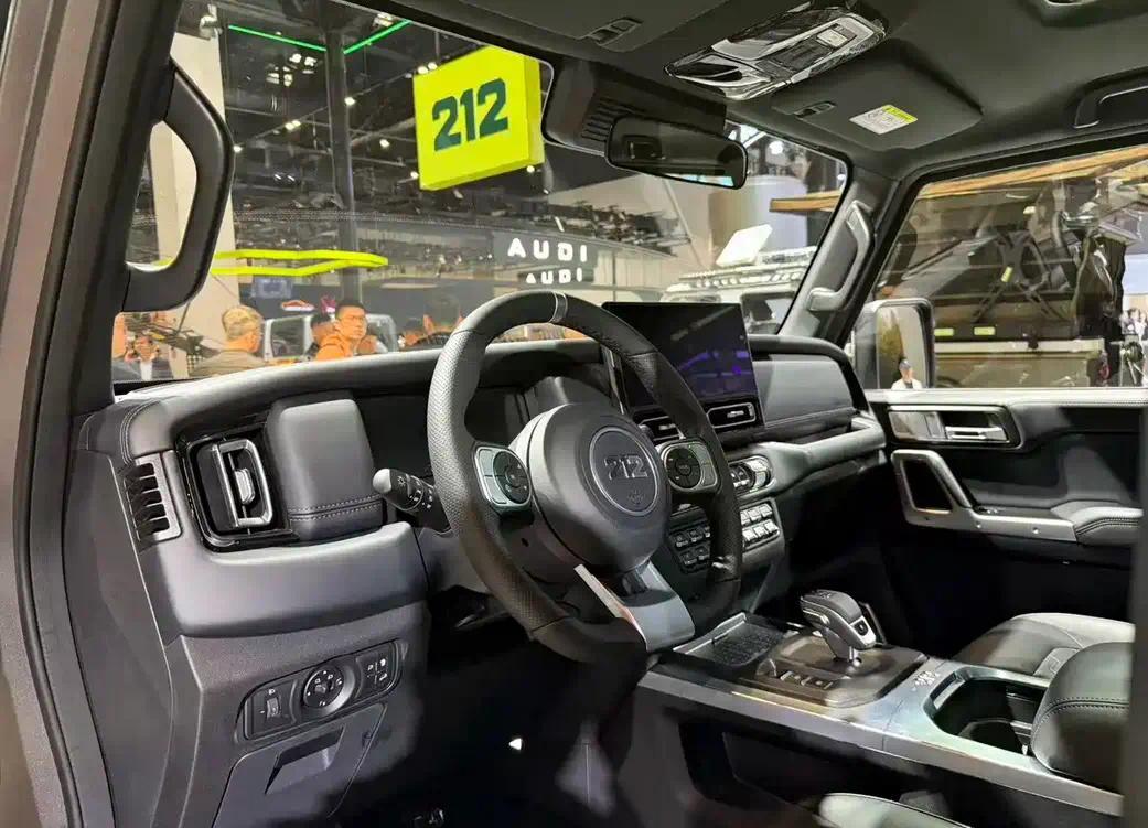 外观延续经典方盒子造型,融入现代设计语言,全新212标识更具辨识度;内饰升级智能座舱,搭载大尺寸中控屏、多功能方向盘,标配座椅加热/通风、L2级驾驶辅助,兼顾越野硬核与家用舒适。